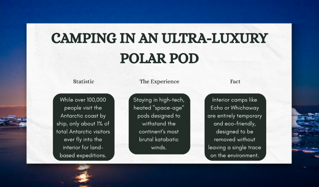 Below are five experiences that can only happen deep in the Antarctic interior; plus the practical reality behind each one, so you know what makes them possible.
